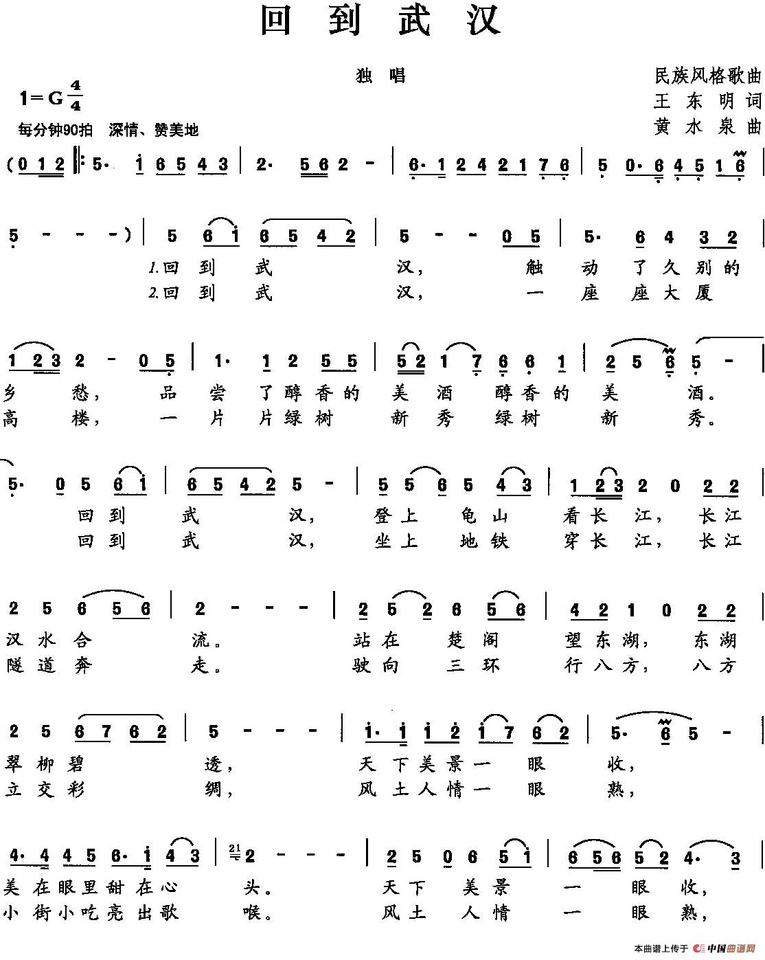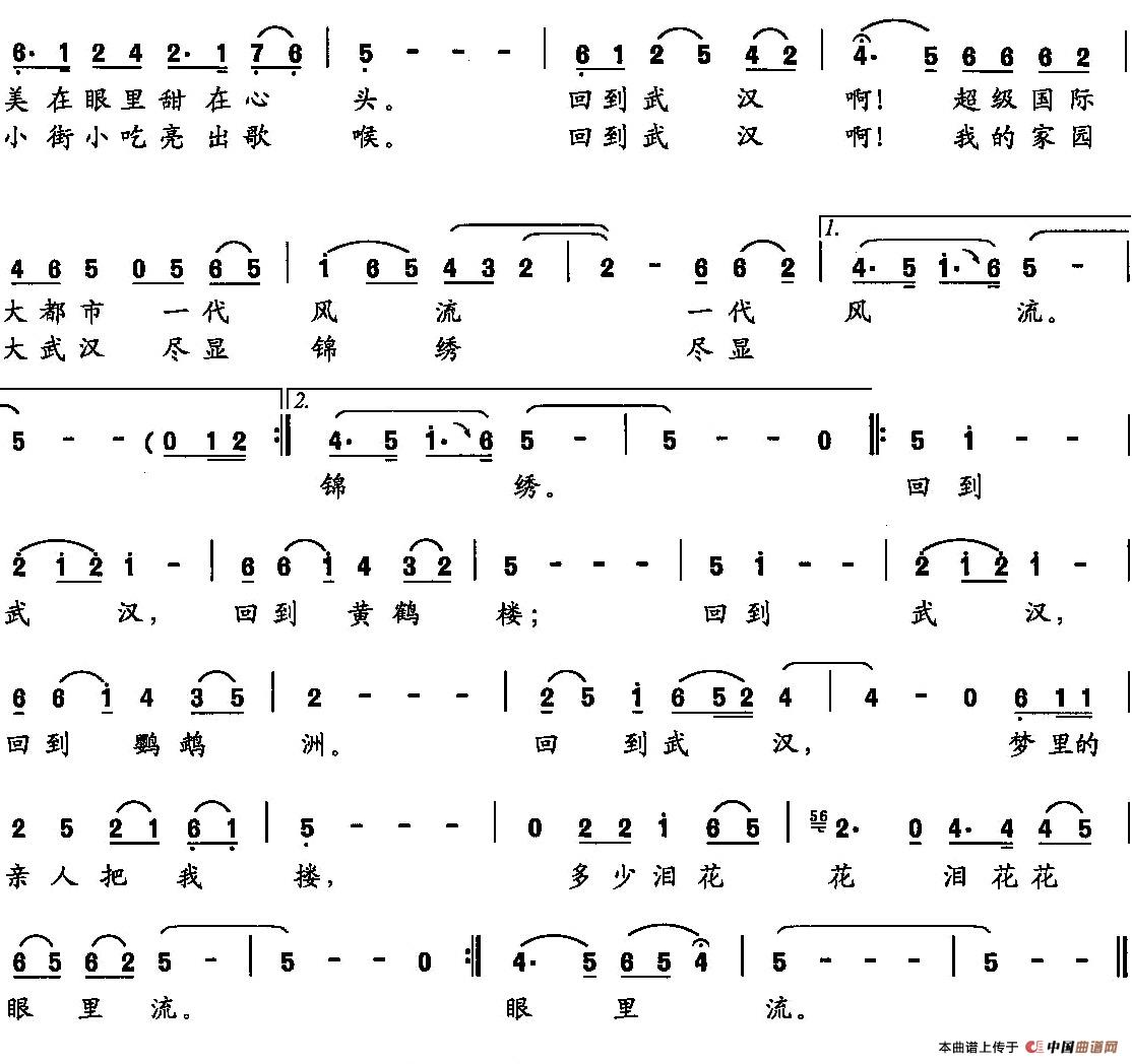 《回到武汉》简谱