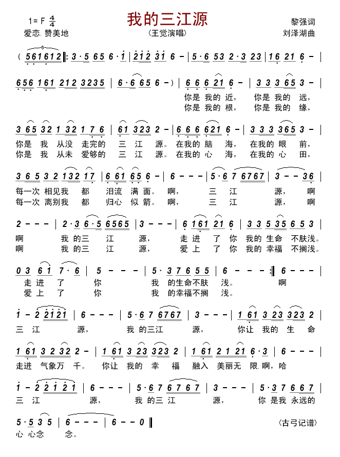 《我的三江源》简谱 王觉