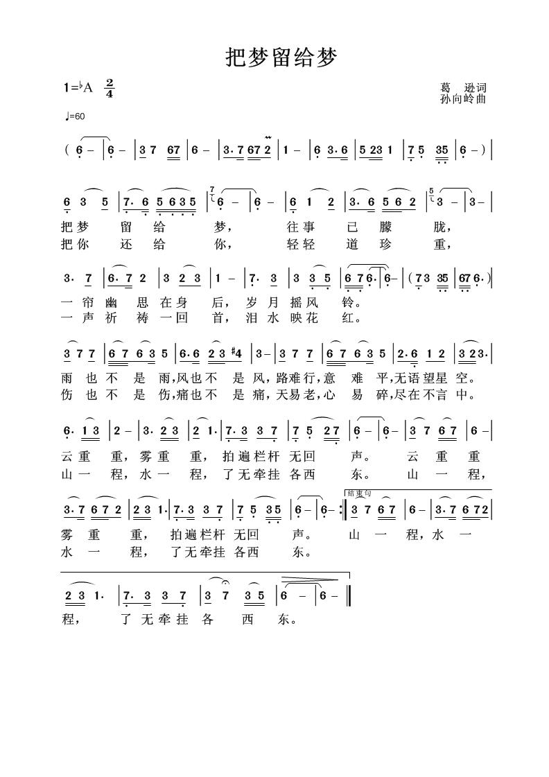 《把梦留给梦》简谱