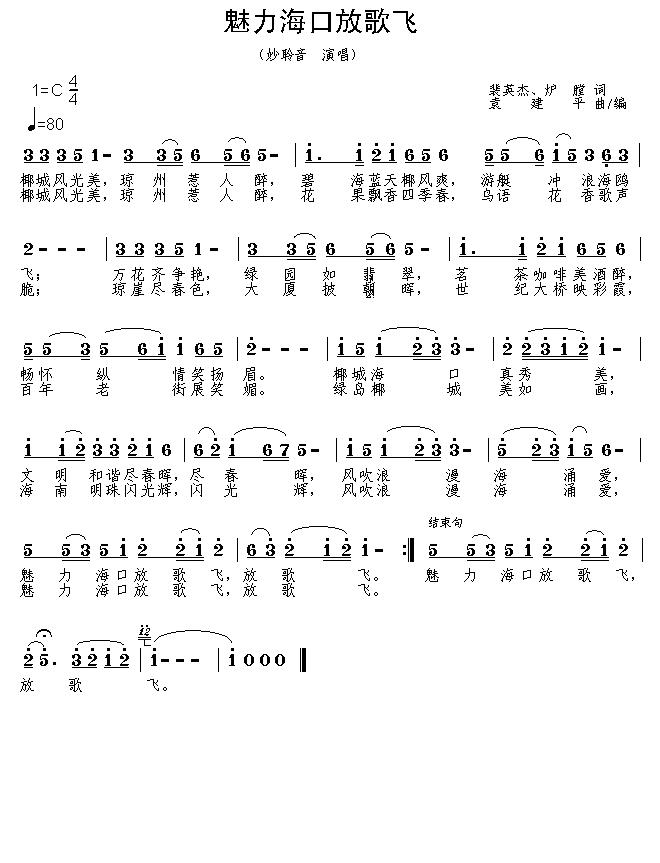 《魅力海口放歌飞》简谱