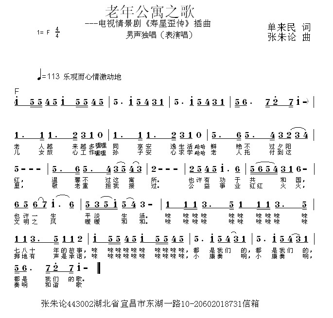 《老年公寓之歌》简谱