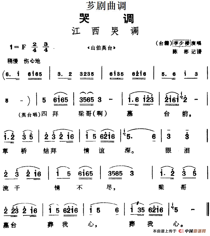 《[芗剧曲调]江西哭调(选自《山伯英台》)》简谱 李少楼