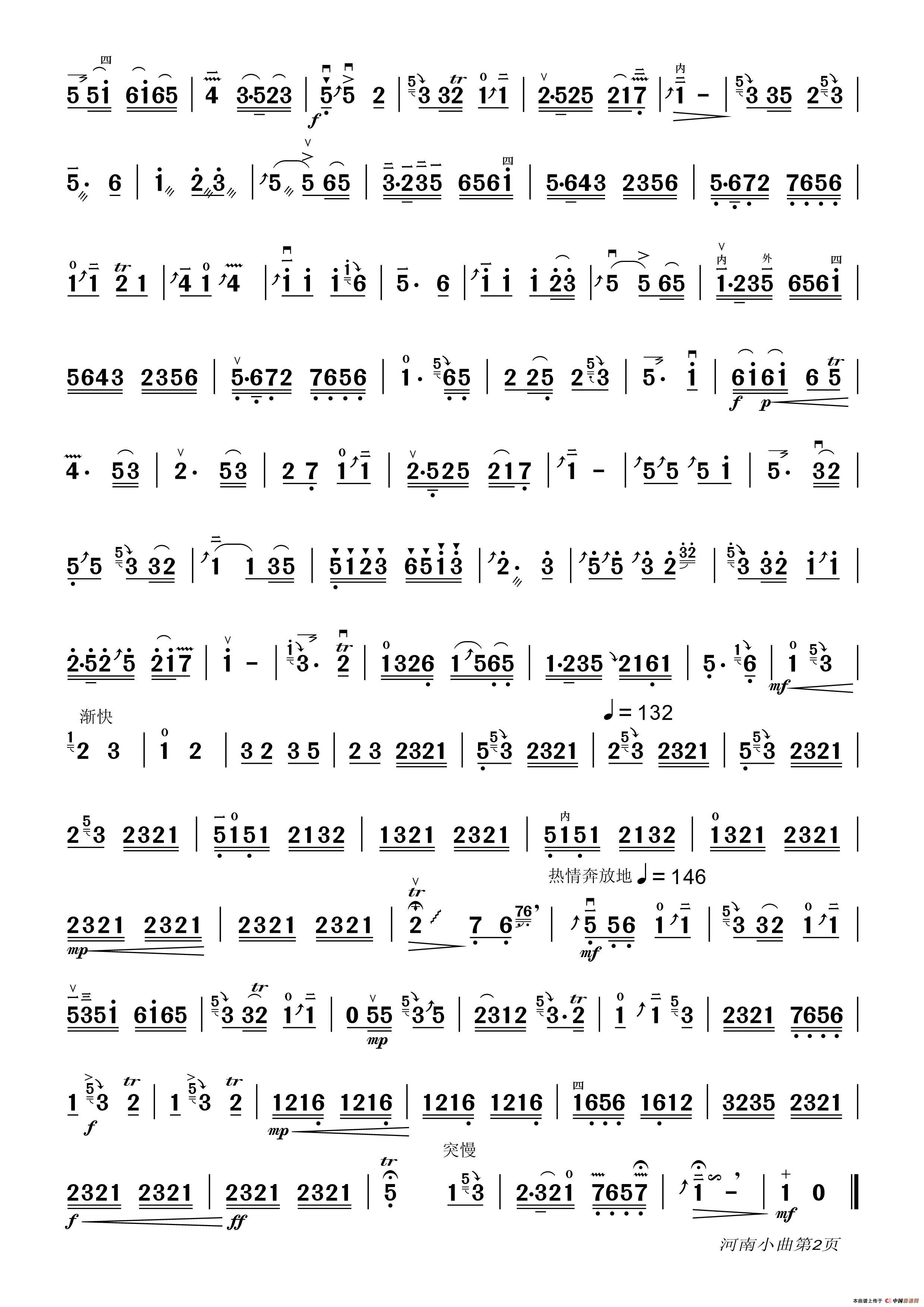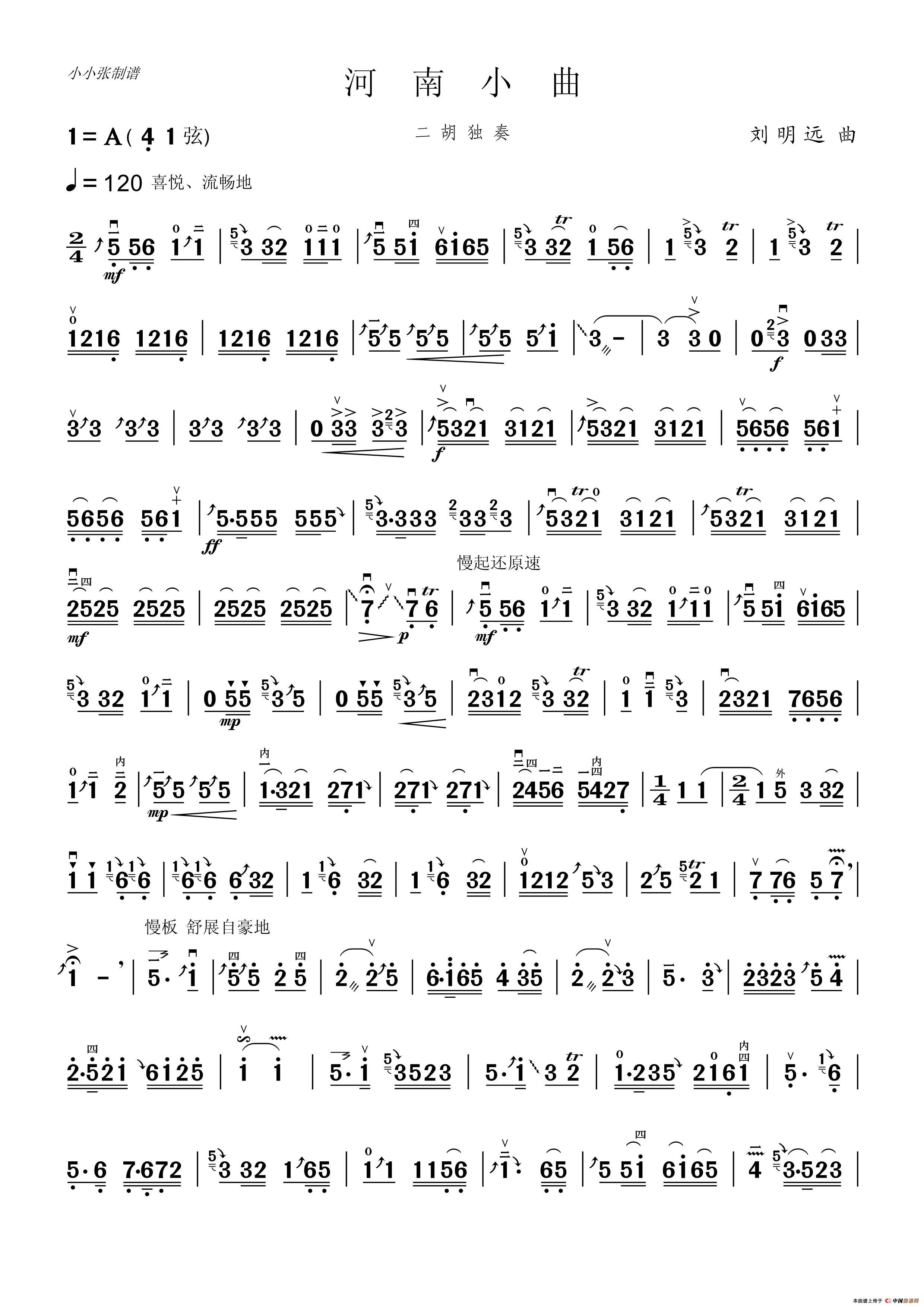 《河南小曲(二胡独奏)》简谱