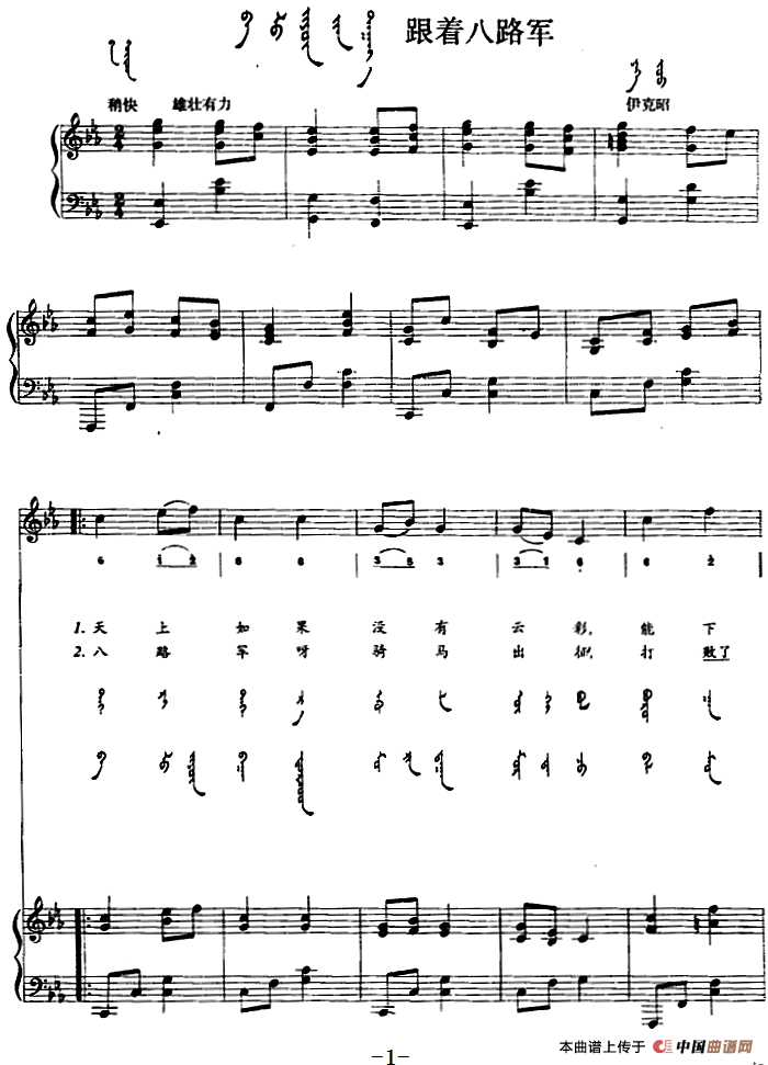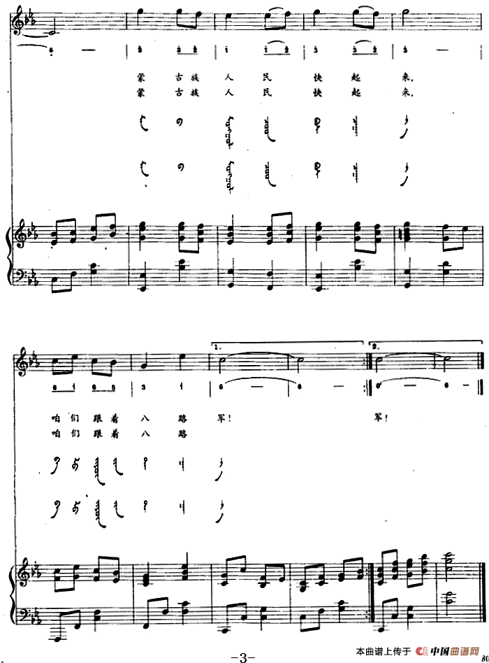 美丽的草原我的家(线谱)-内蒙古蒙族青年合唱团