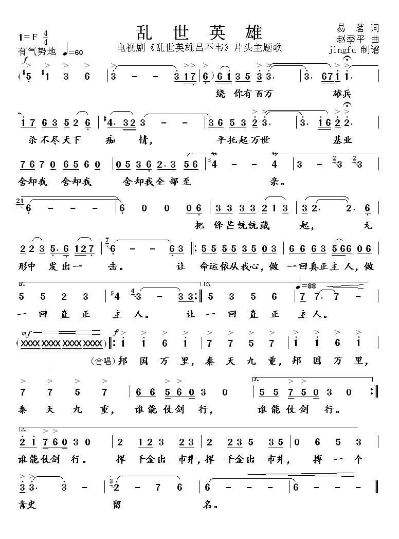 为您搜集整理歌曲曲谱歌谱、简谱、吉它谱、钢琴谱!