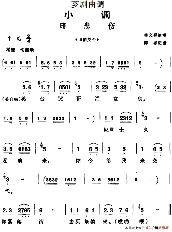 《[芗剧曲调]暗悲伤(选自《山伯英台》)》简谱 林文祥