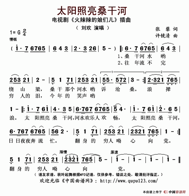 《太阳照亮桑干河(电视剧《火辣辣的娘们儿》插曲)》简谱 刘欢