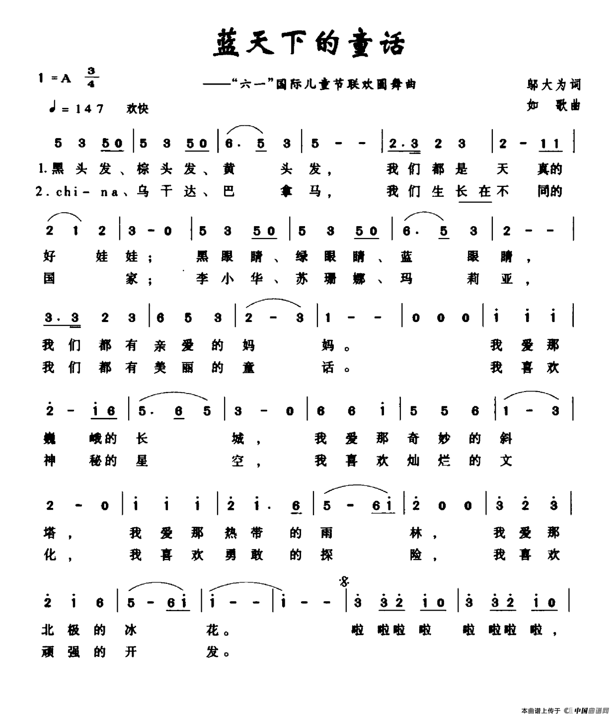 《蓝天下的童话》简谱