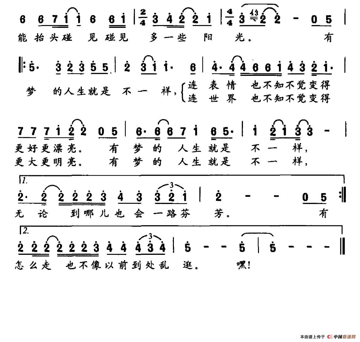 《有梦的人生就是不一样》简谱