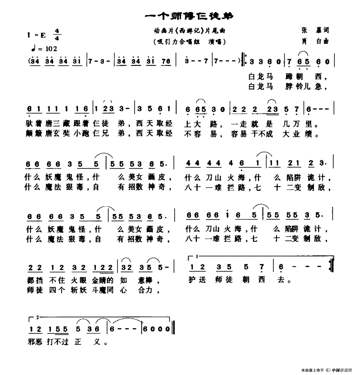 《一个师傅仨徒弟(动画片《西游记》片尾曲)》简谱 吸引力组合