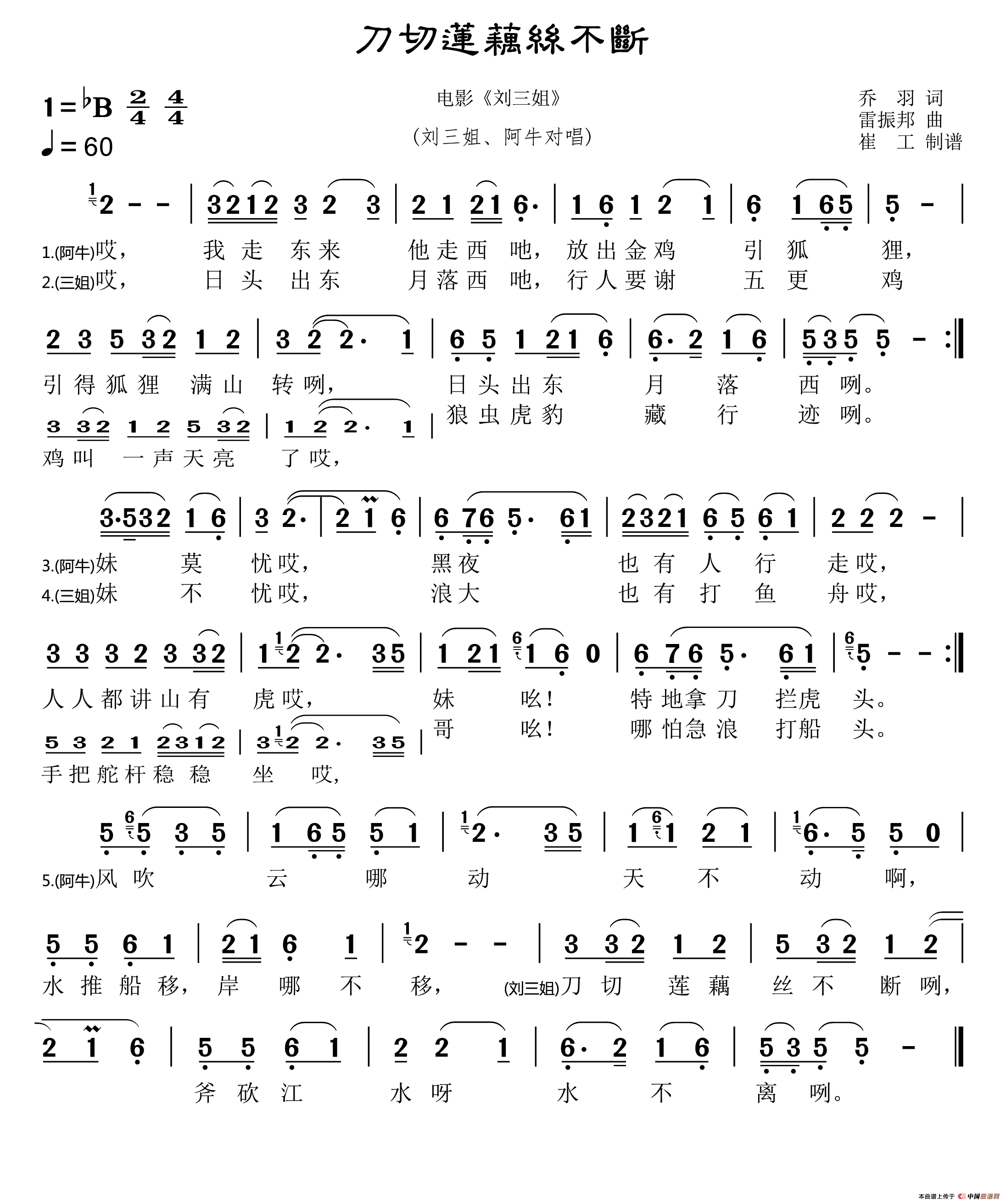 《刀切莲藕丝不断(电影《刘三姐》选曲)》简谱