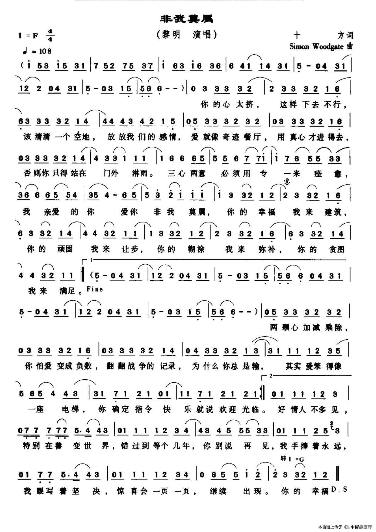 《非我莫属》简谱 黎明