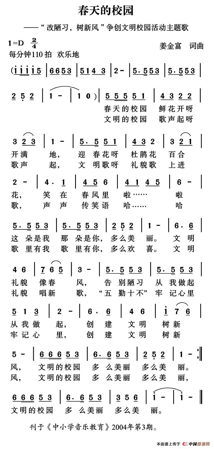 《春天的校园》简谱
