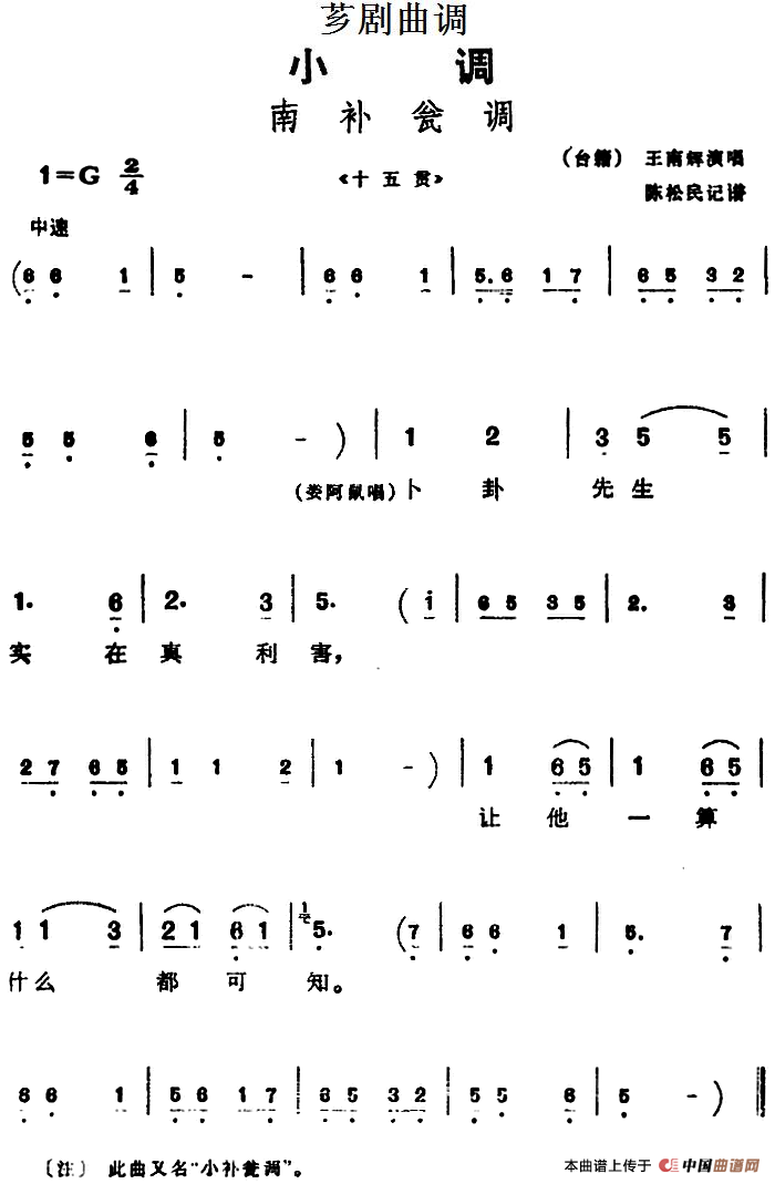 《[芗剧曲调]南补瓮调(选自《十五贯》)》简谱
