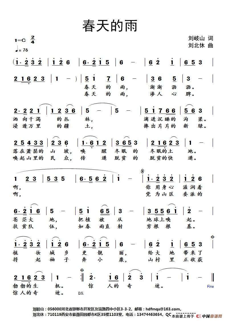 《春天的雨》简谱