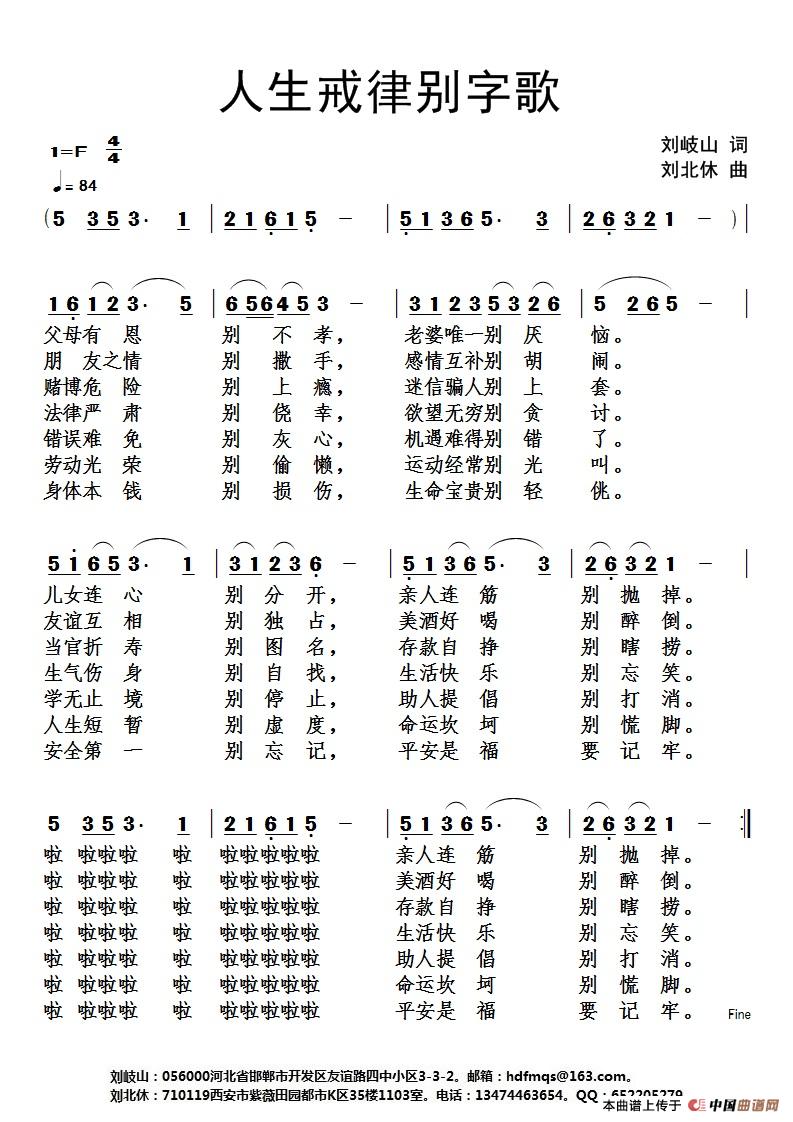 《人生戒律别字歌》简谱