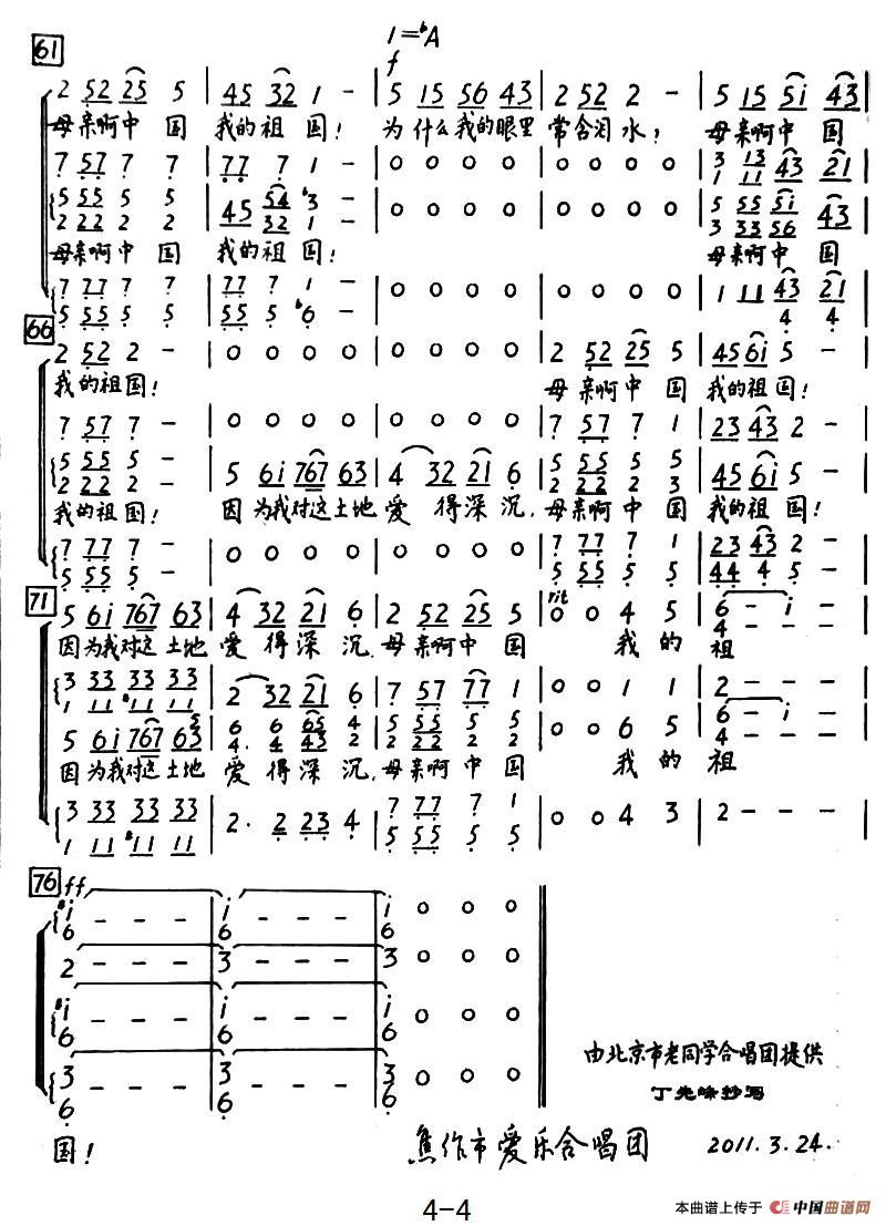 《致祖国(混声合唱)》简谱 焦作市爱乐合唱团