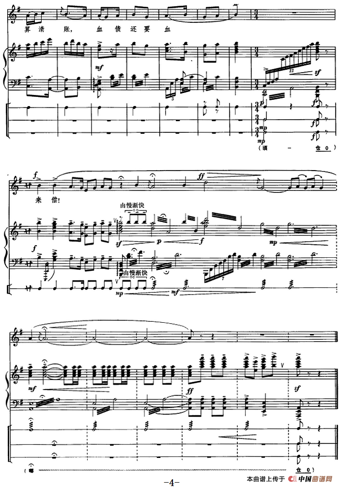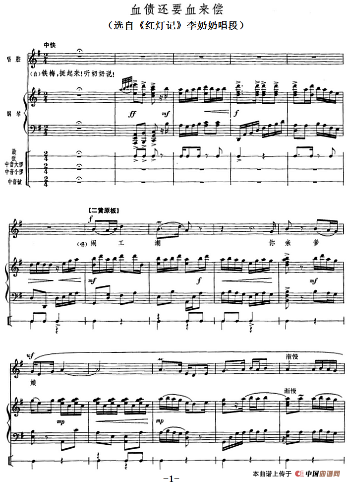 《钢琴伴唱京剧《红灯记》:血债还要血来偿(李奶奶唱段)》简谱
