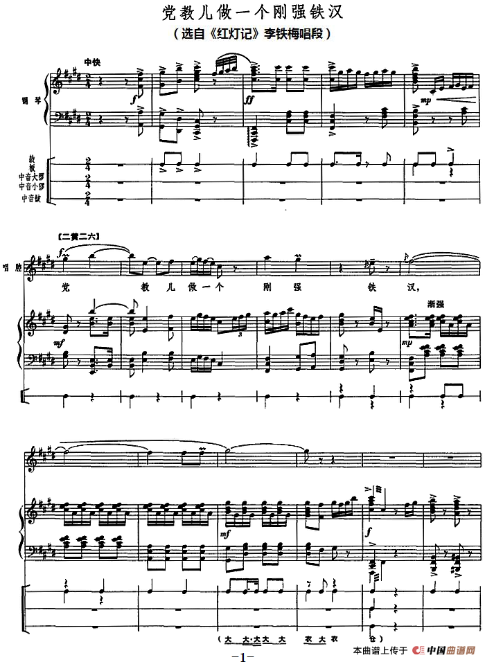 《钢琴伴唱京剧《红灯记》:党教儿做一个刚强铁汉(李玉和唱段)》简谱