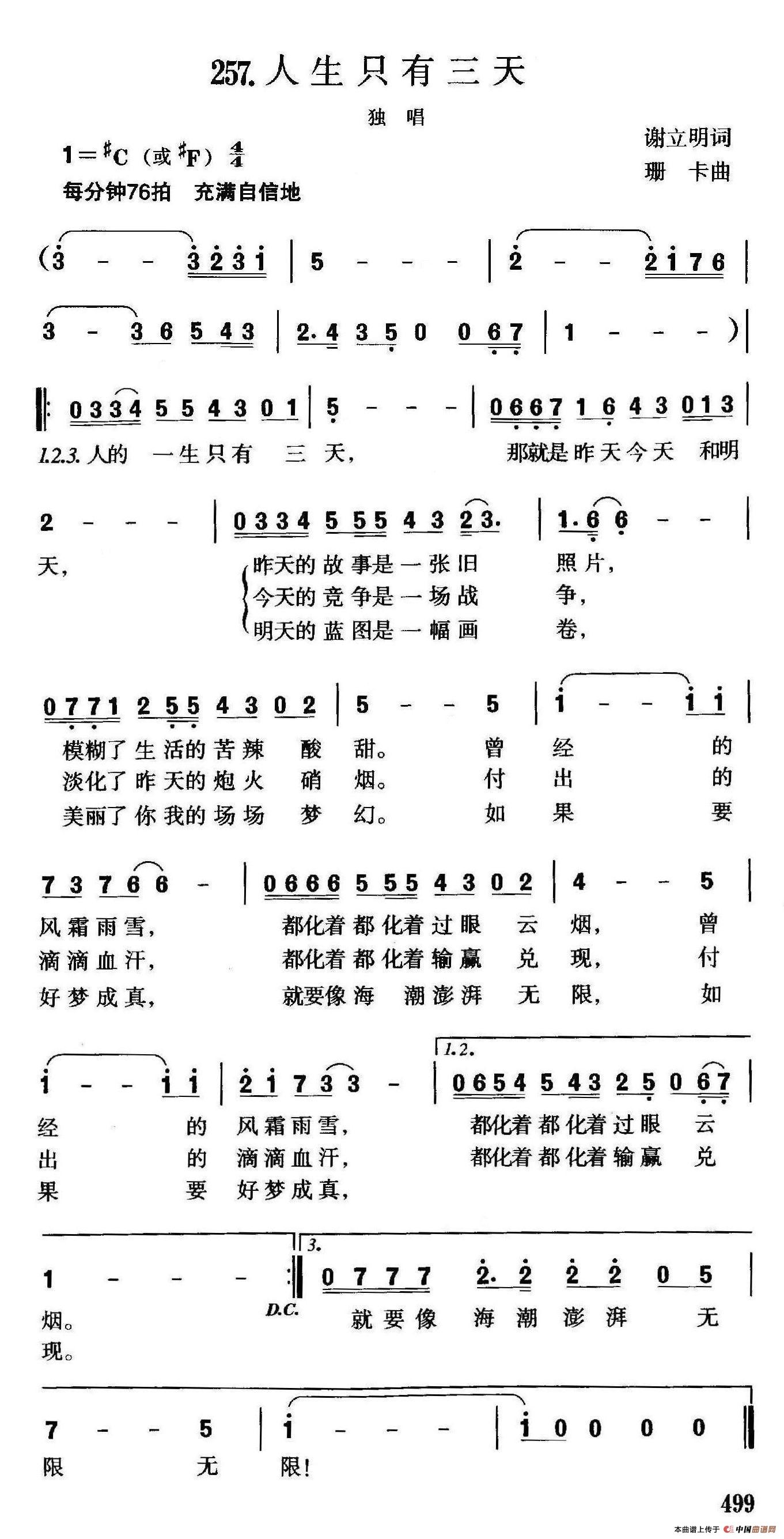 《人生只有三天》简谱