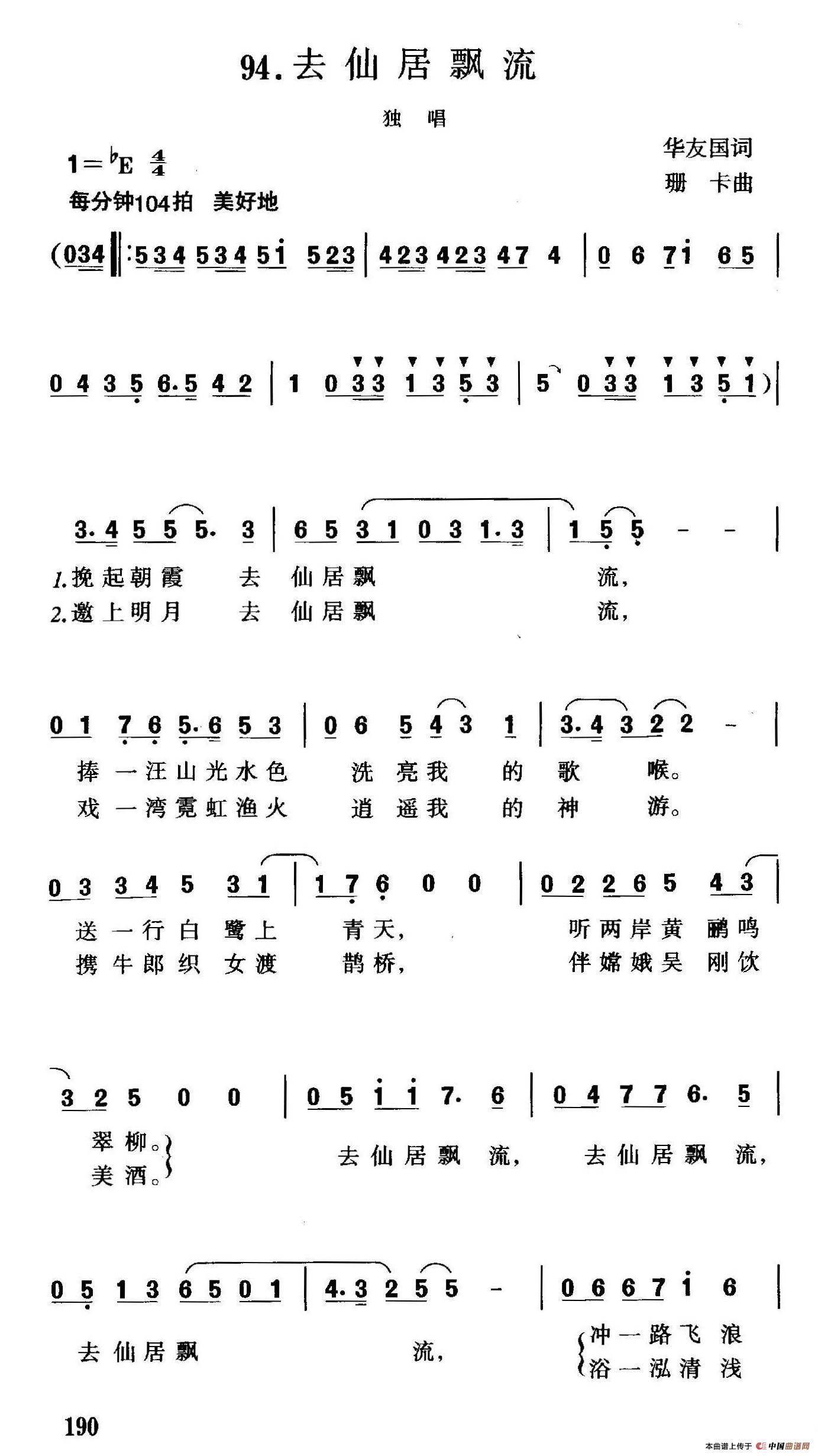 《去仙居飘流》简谱