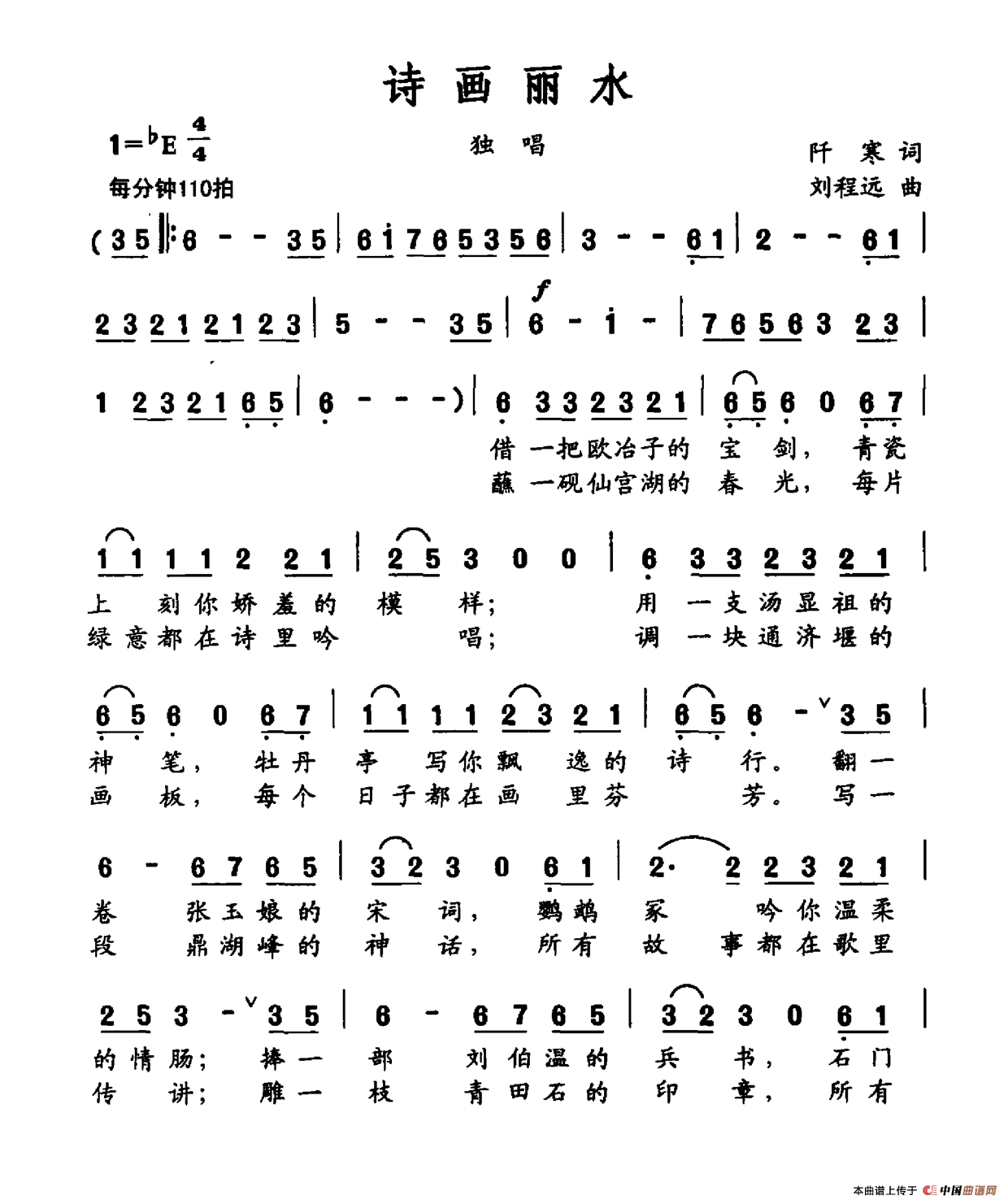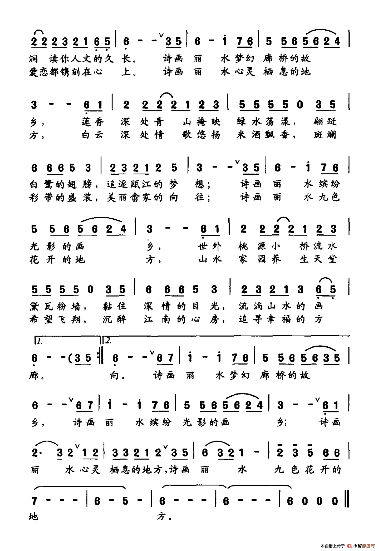 《诗画丽水》简谱