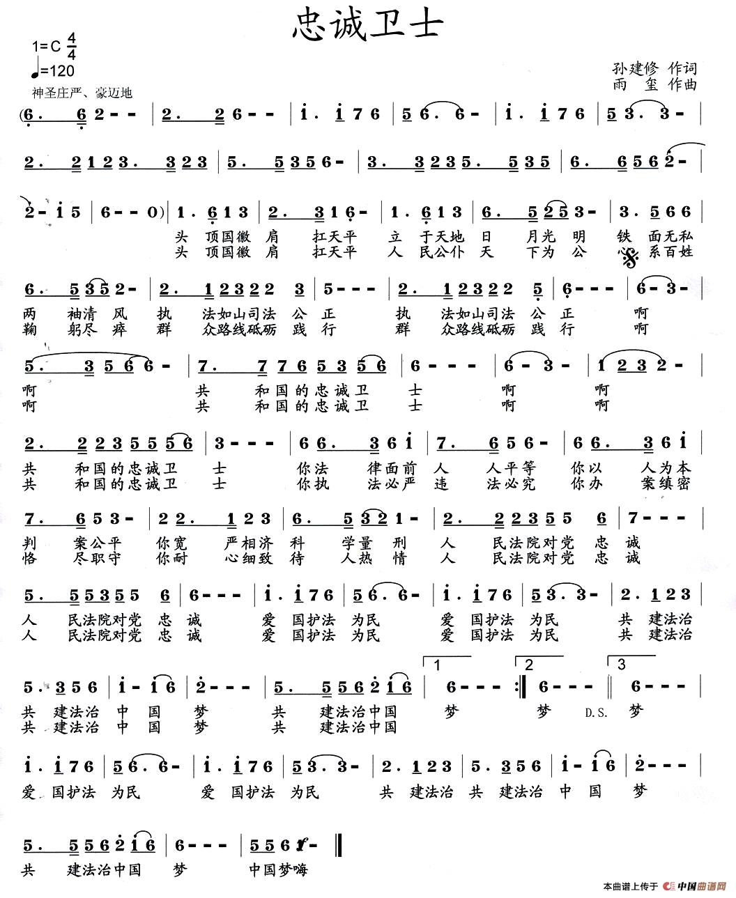《忠诚卫士》简谱