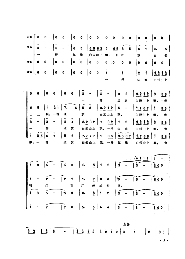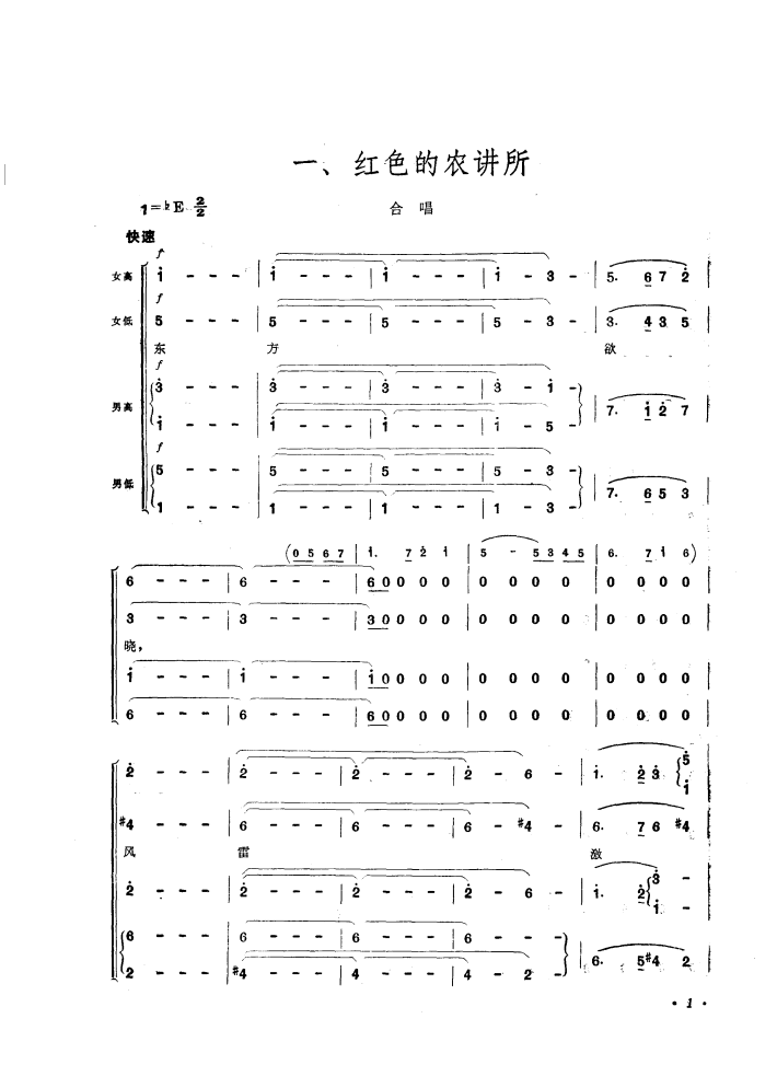 《红色的农讲所(合唱)》简谱 广东省歌舞团