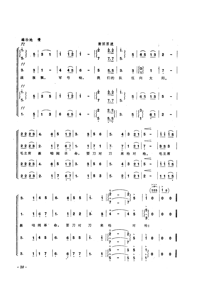 《东较场上练兵忙(齐唱、合唱)》简谱 广东省歌舞团
