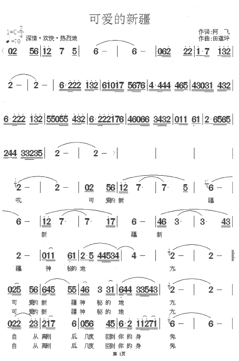 《可爱的新疆》简谱
