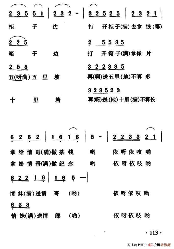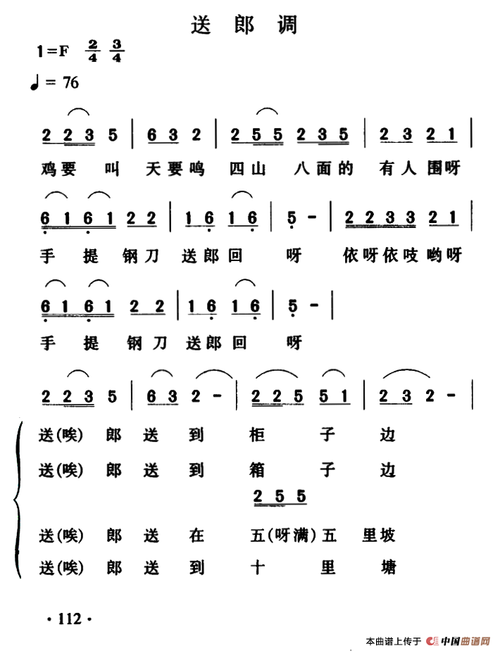 《送郎调(云南大关民歌)》简谱
