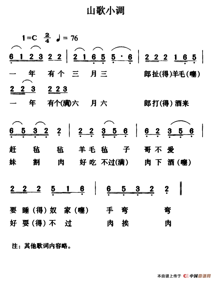 《山歌小调(云南大关民歌)》简谱