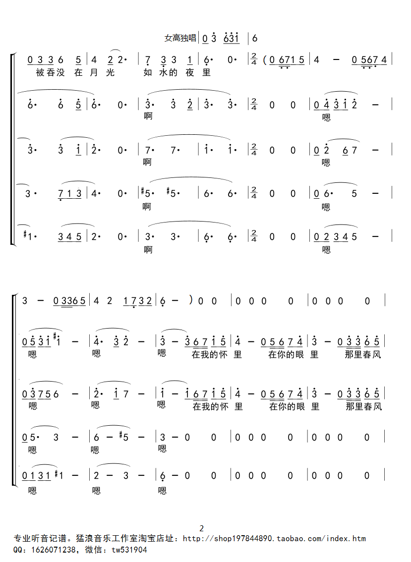 《贝加尔湖畔四声部合唱谱》简谱 李健第2张