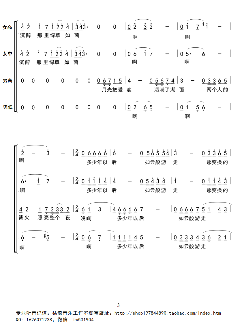 《贝加尔湖畔四声部合唱谱》简谱 李健第3张