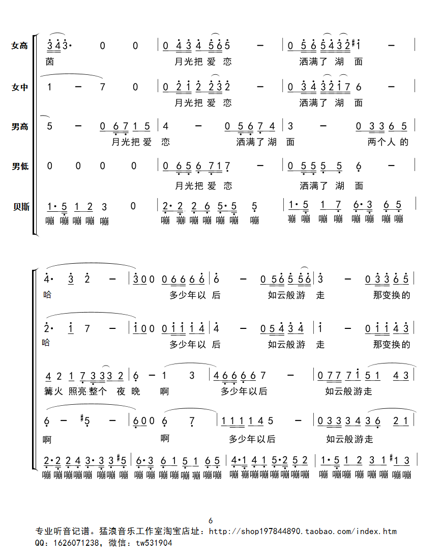 《贝加尔湖畔四声部合唱谱》简谱 李健第6张