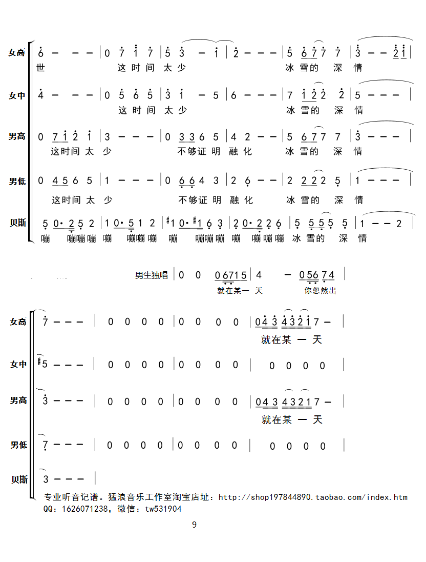 《贝加尔湖畔四声部合唱谱》简谱 李健第9张