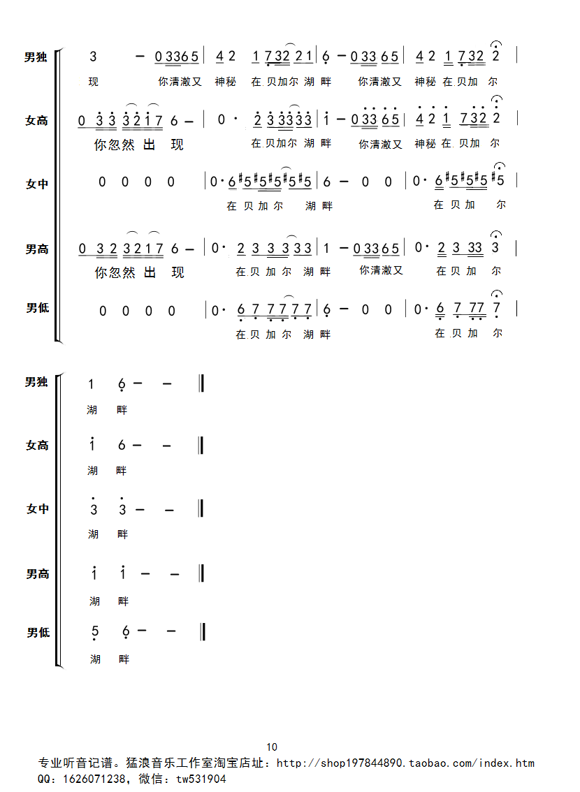 《贝加尔湖畔四声部合唱谱》简谱 李健第10张