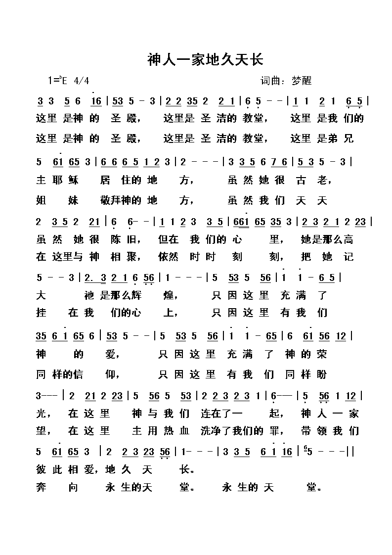 - 梦醒 | 唯有神家里才天天团圆简谱