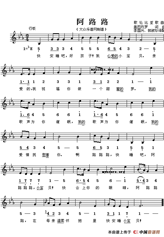 《[哥伦比亚]阿路路(线简谱对照版)》简谱