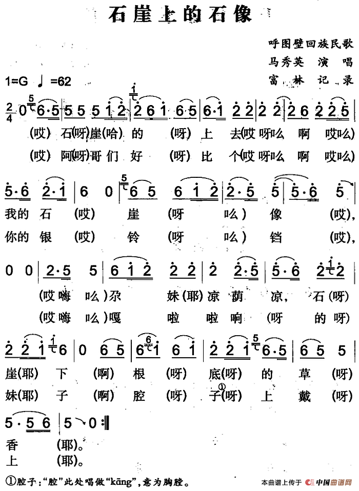 《石崖上的石像》简谱