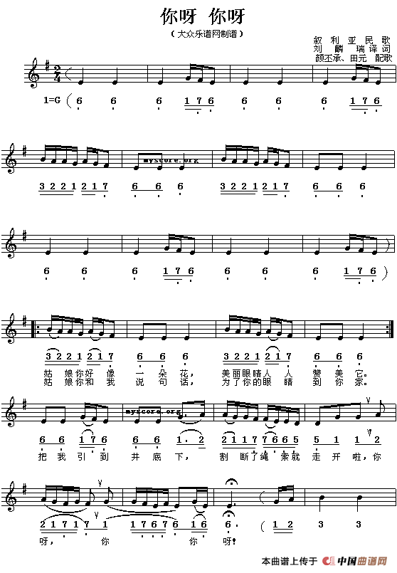 《[叙利亚]你呀 你呀(线简谱对照版)》简谱