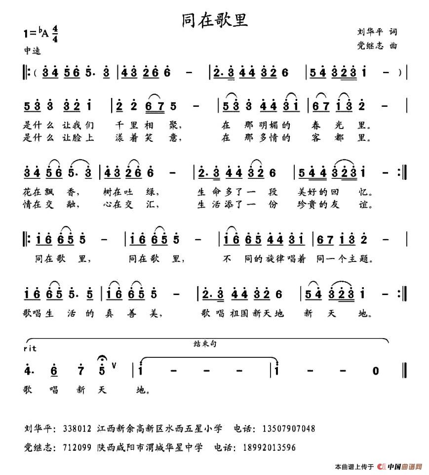 《同在歌里》简谱