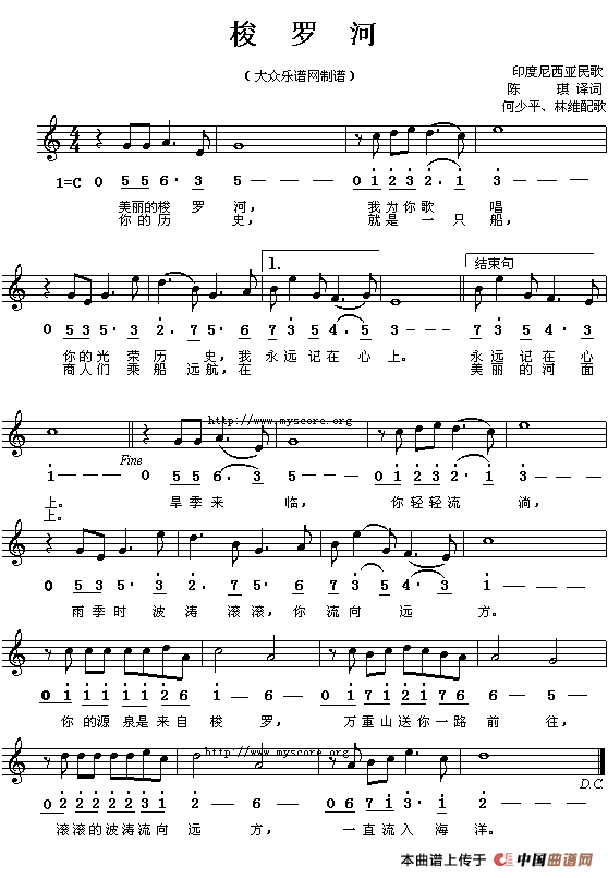 《[印尼]梭罗河(线简谱对照版)》简谱