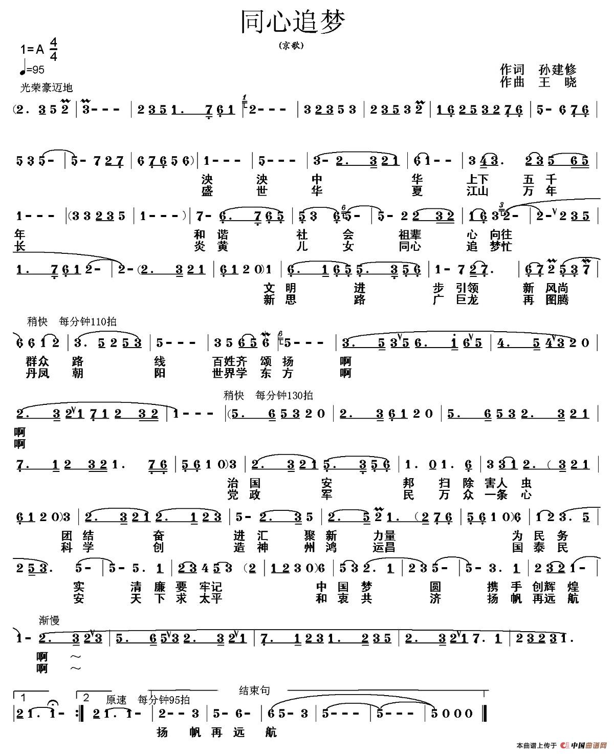 《同心追梦》简谱