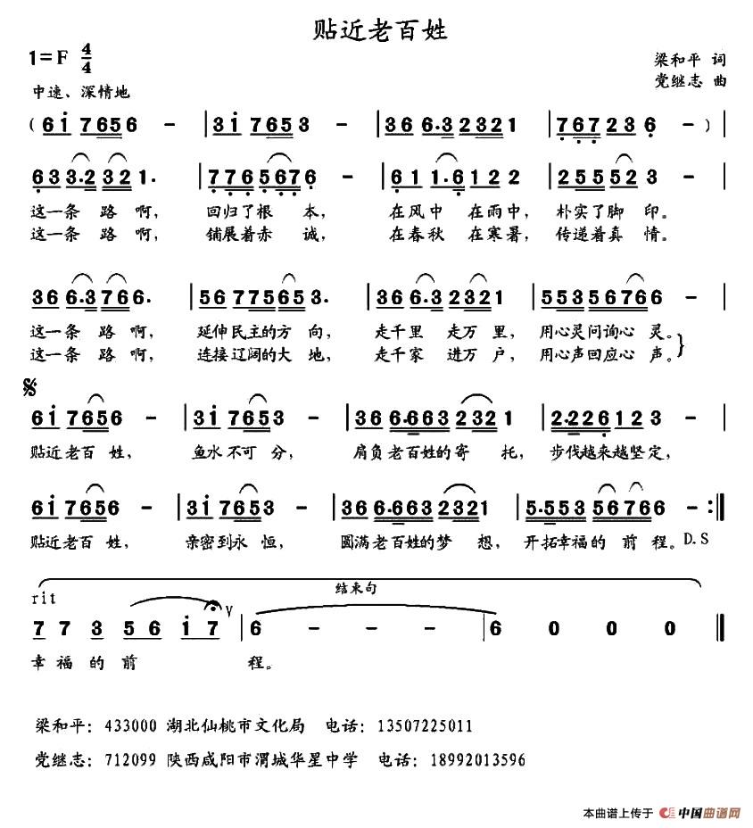 《贴近老百姓》简谱
