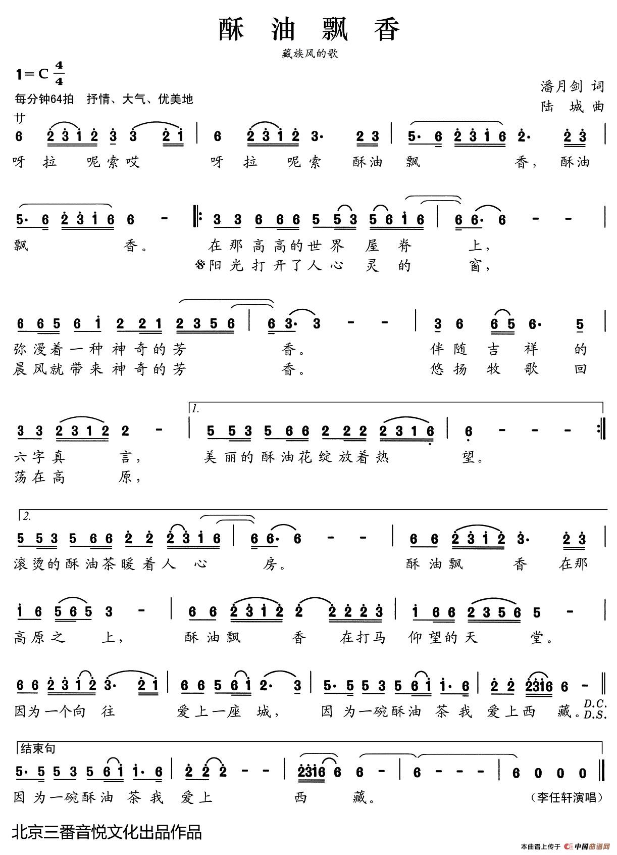 《张开歌声的翅膀:15、酥油飘香》简谱