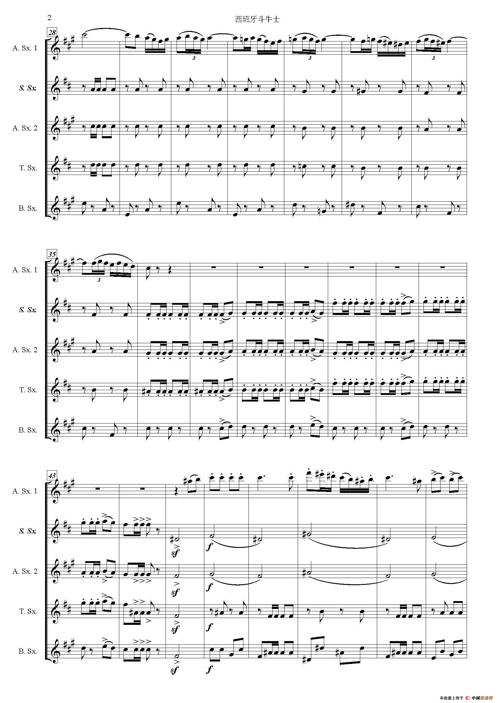 《xbydns(萨克斯五重奏(中萨独奏))》简谱 第2张