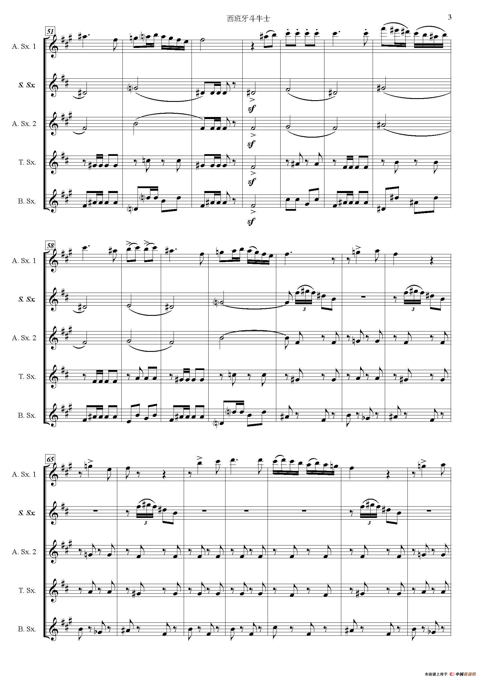 《xbydns(萨克斯五重奏(中萨独奏))》简谱 第3张
