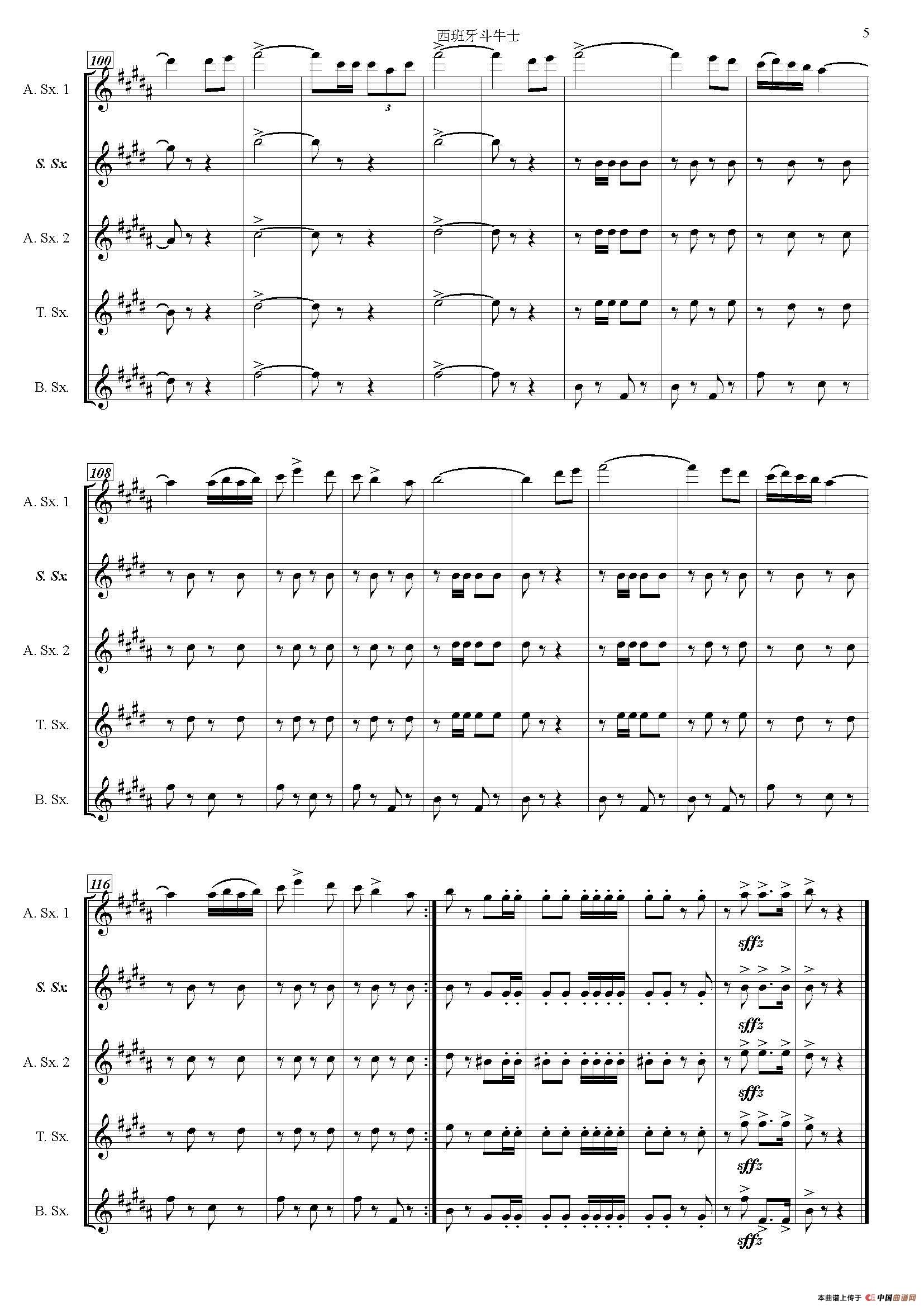 《xbydns(萨克斯五重奏(中萨独奏))》简谱 第5张