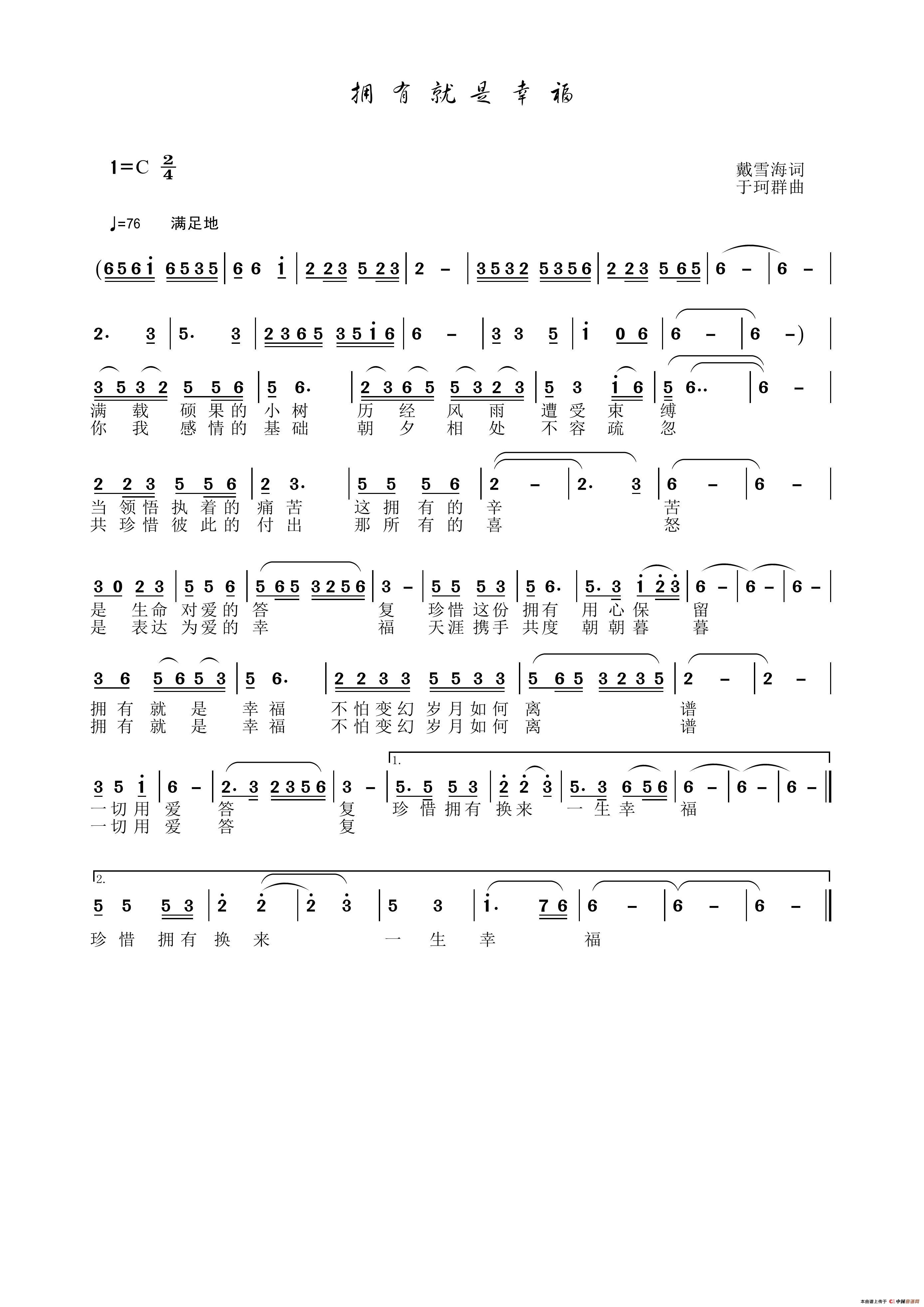 《拥有就是幸福》简谱